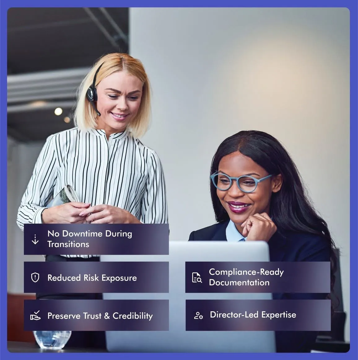 - Gain executive-level guidance immediately to reduce risk during transitions